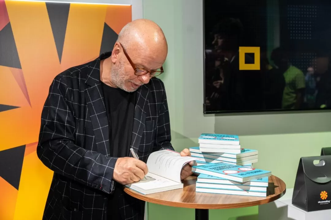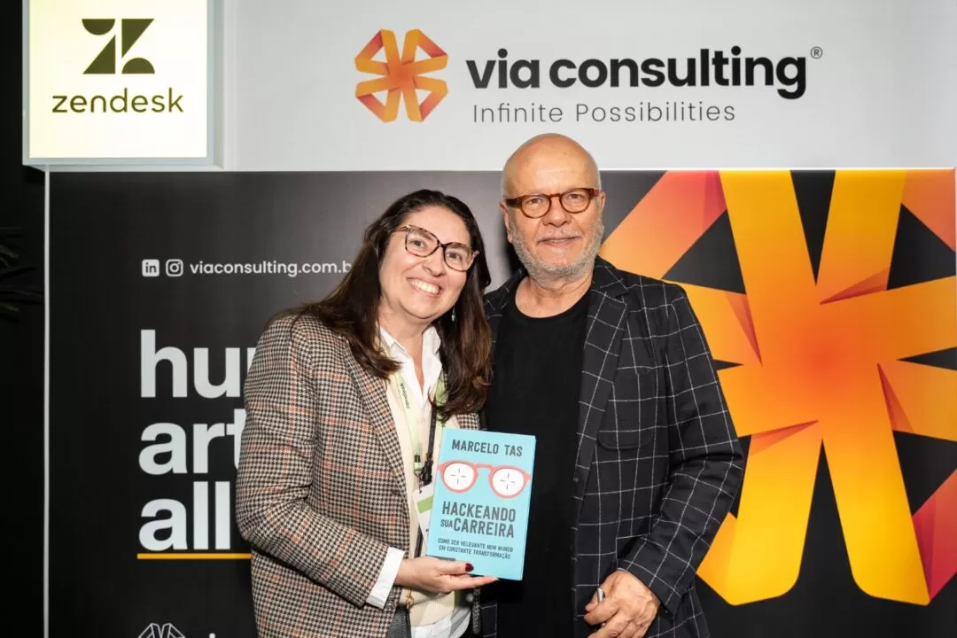 O Meet & Greet, realizado no Lounge da Via Consulting logo após os painéis, também foi um momento marcante, onde clientes receberam livros autografados por Marcelo Tas e presentes exclusivos. Outros visitantes do evento também tiveram a oportunidade de interagir com o comunicador.